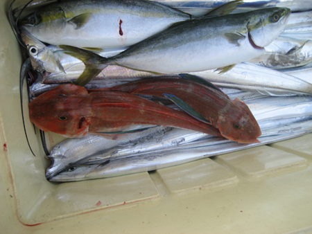 お昼過ぎからタチウオ。ポツポツ釣れました。ホウボウ2匹のおまけつき。