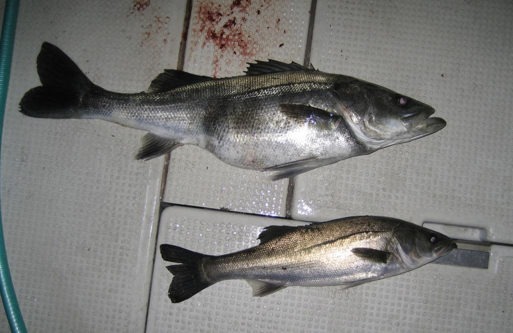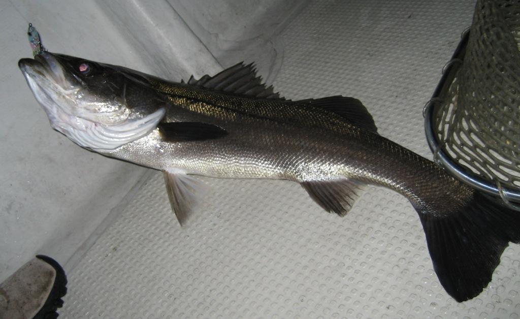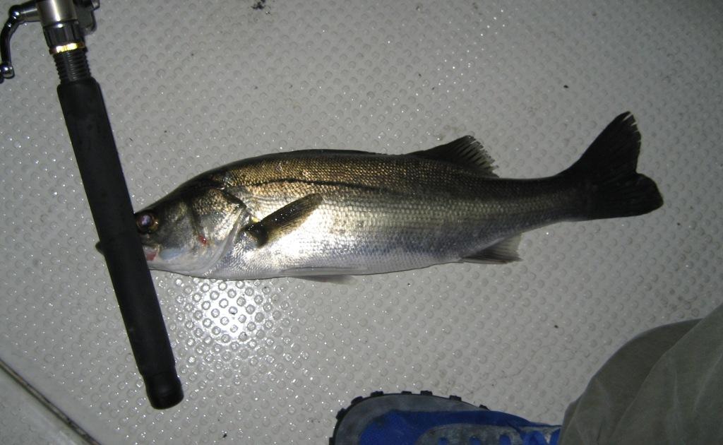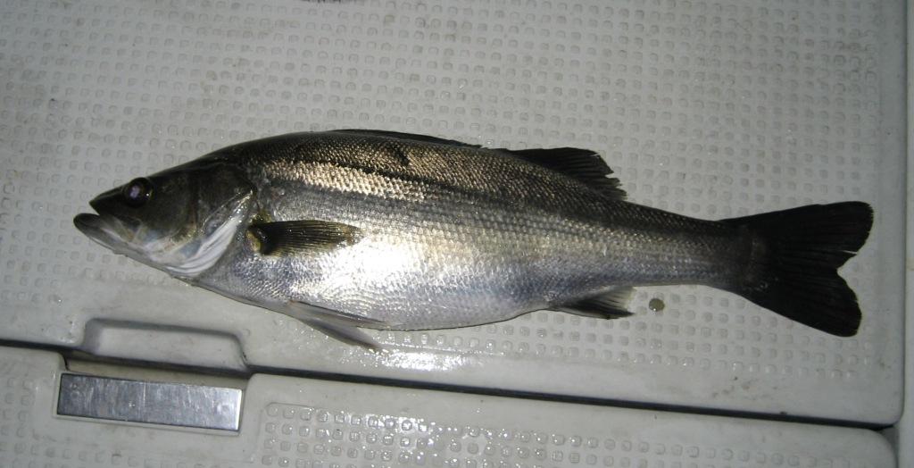 最初にOK野君が釣ったセイゴ お腹パンパン。