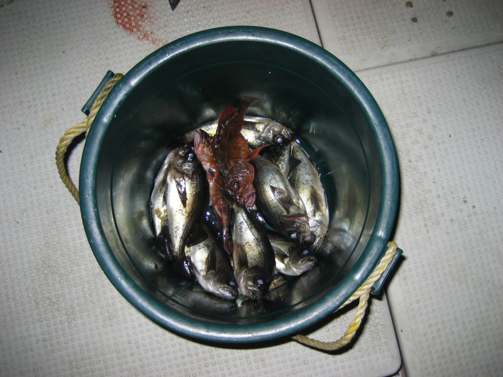 サイズの良いメバルを次々と釣り上げるN山を横目に他の3人は20~30cmのチダイ混じりで少しばかりメバルを釣って帰りました。