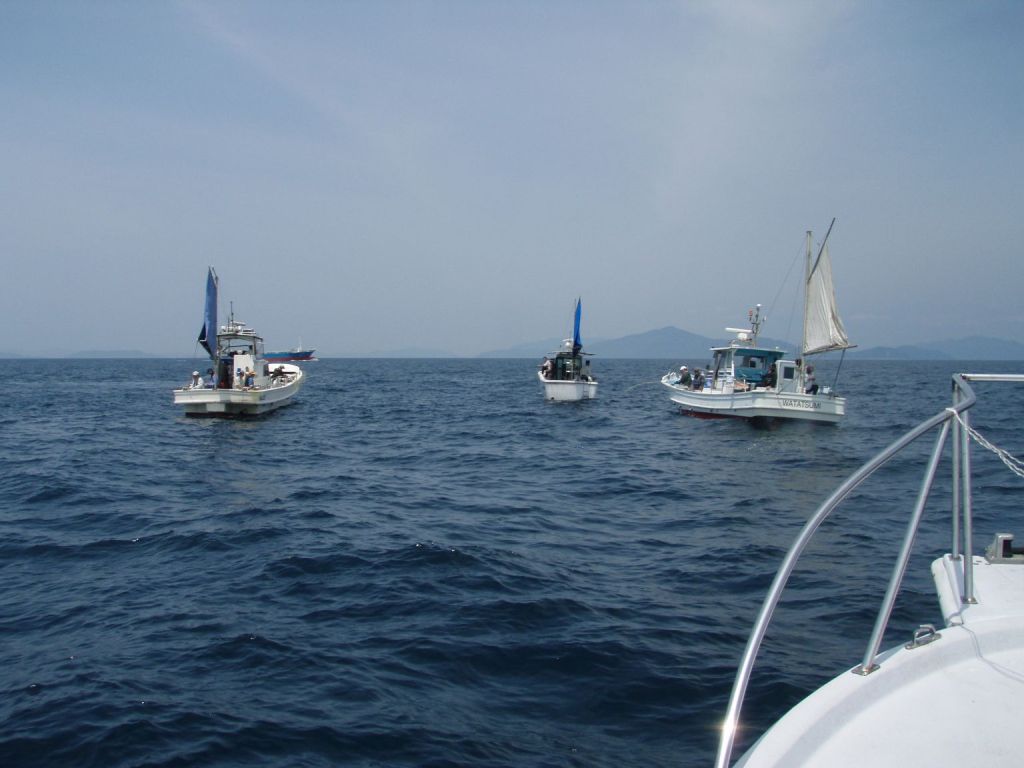 船が密集しているのと結構な波風で私は操船。