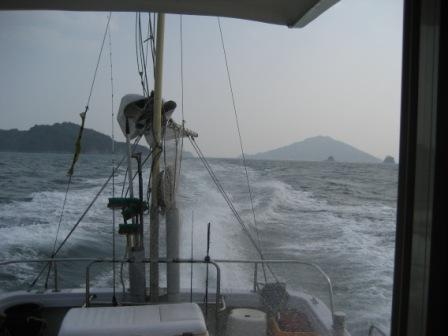 お昼一時に港へ船を向けました。徐々に西の風が強くなり波が高くなる前に帰港。