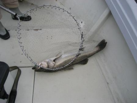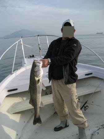 えらい長い時間、ファイトしてるな~と思ったら、90cmクラスのスズキでした。