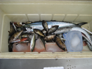 サワラはOK野君とコージさんがつりました。ドクターもかけましたが取れませんでした。コージさんも後で1本かけましたが惜しくも逃がしました。私はコツッともきませんでした。